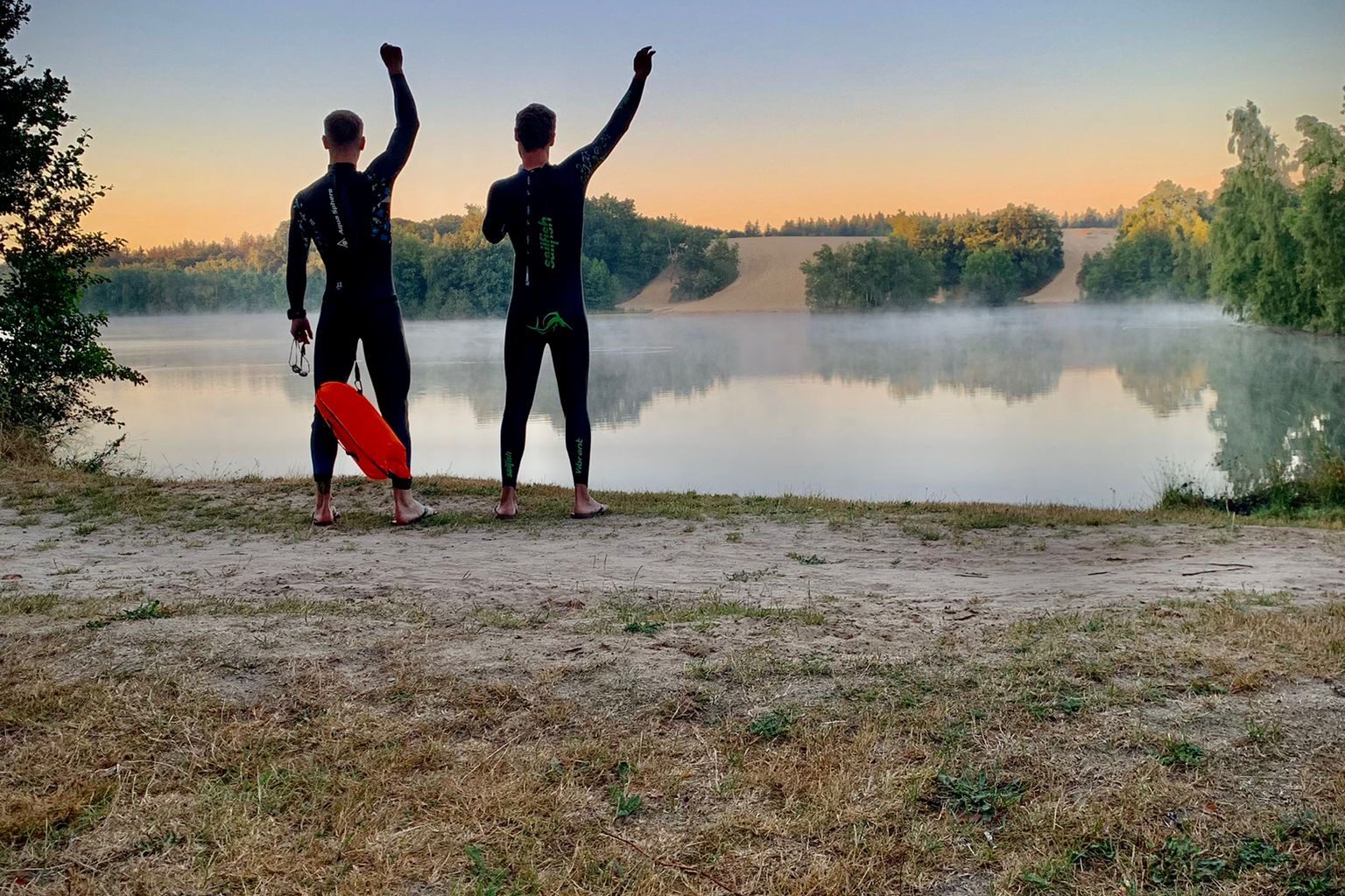 A few strokes in, and I realized I couldn’t breathe properly. Panic rising, I looked up—and by pure luck, my friend was right next to me. Perfect! I shouted at him mid-swim, begging him to pull the back of my wetsuit up so I could actually get some air. Crisis averted.